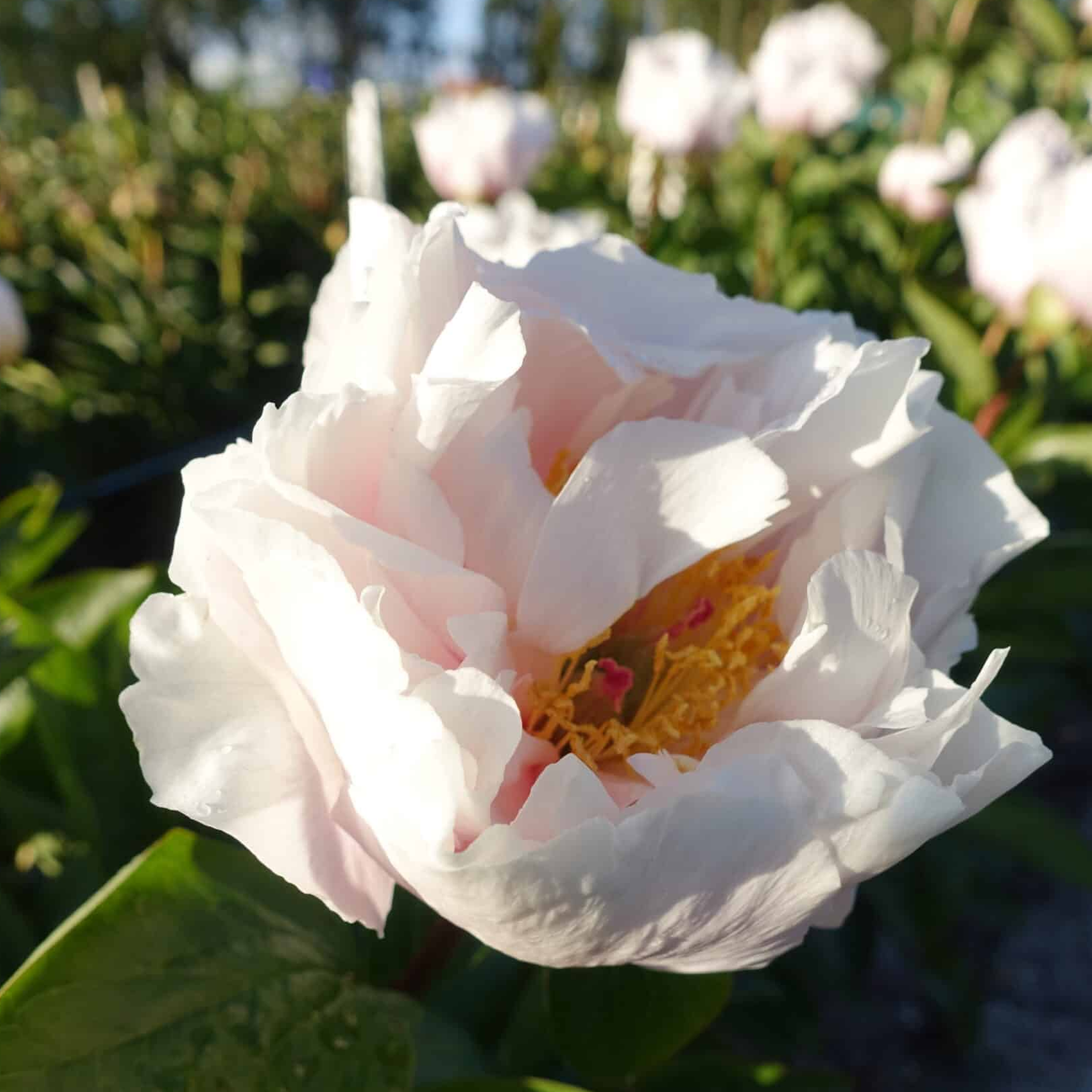 Происхождение сорта: Majesty’s Light травянистый гибридный пион, созданный в США селекционером Роджером Ф. Андерсоном, селекционный код RNH-04/Y-158.